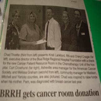 “Chad Trivette’s initiatives throughout the county helped MCRFL exceed the 2009 fundraising goal of $55,000 by raising $61,000 in a year that the economy was really down, especially in Mitchell County.”